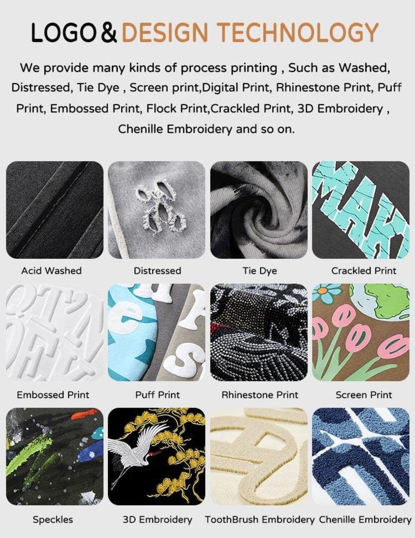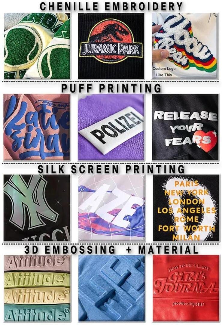 Welcome to our customization hub, where your creativity meets cutting-edge technology. We offer a wide range of high-quality customization techniques to bring your unique clothing designs to life. From vibrant prints to textured embroidery, our options are designed to cater to all your branding and fashion needs. Whether you're looking for bold, 3D effects or intricate screen printing, we have the perfect solution to elevate your garments. Explore the possibilities below and create something truly extraordinary.